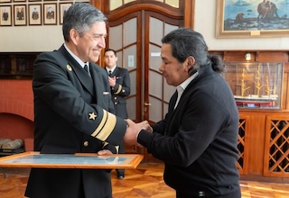 “La Armada de Chile es una institución querida y valorada por la comunidad nacional. Y la historia de Aquiles, quien pertenece a la comunidad kawésqar uno de los pueblos originarios del territorio austral, merecía este momento”, expresó el Contraalmirante Jorge Castillo.