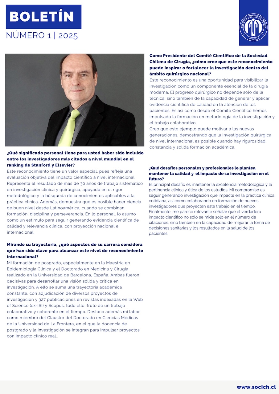 El doctor Carlos Manterola Delgado, fue reconocido entre los científicos más citados del mundo según ranking de Stanford y Elsevier 2025.