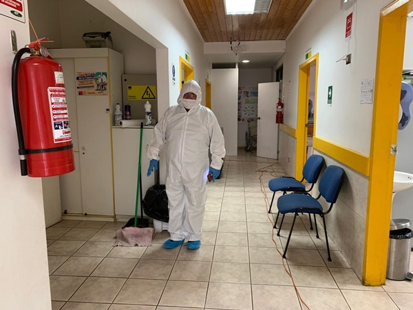 Se trató de un procedimiento coordinado para la mañana de este viernes y contempló trabajos en los exteriores del recinto médico, la recepción, box, vestidores, baños, sillas de espera, rincones y puertas del edificio.